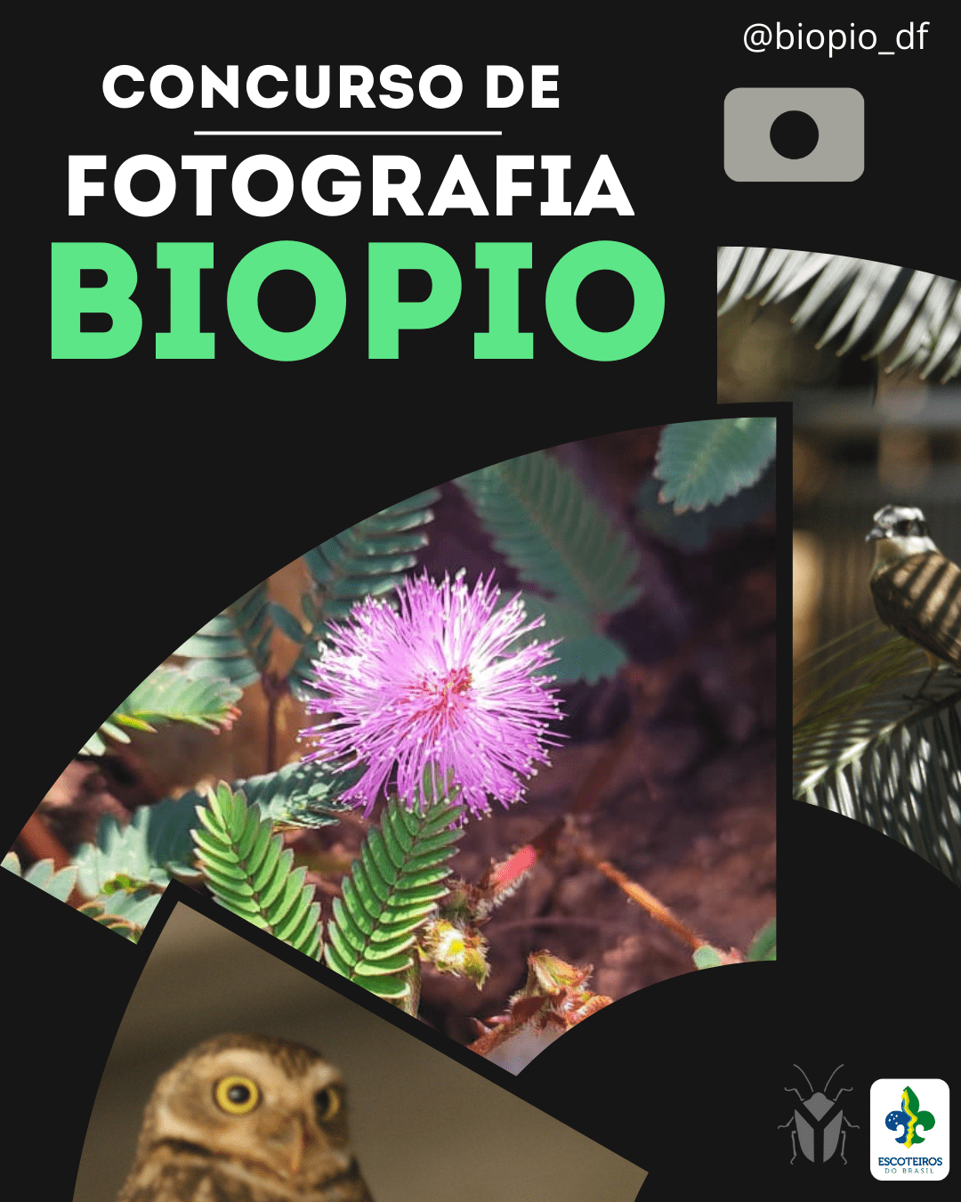 Vendo o excelente desempenho nas atividades e os registros fotográficos incríveis realizados pelos participantes, a equipe do Projeto BioPio convida todos os integrantes do Movimento Escoteiro do Brasil a participarem do Concurso de Fotografia BioPio, que acontecerá de forma online, com início no dia 22 de outubro de 2025 e encerramento no dia 27 de fevereiro de 2026. A participação será feita por meio do envio das fotos através do formulário oficial do concurso. Cada participante poderá enviar até duas fotos por subcategoria, respeitando as categorias propostas.